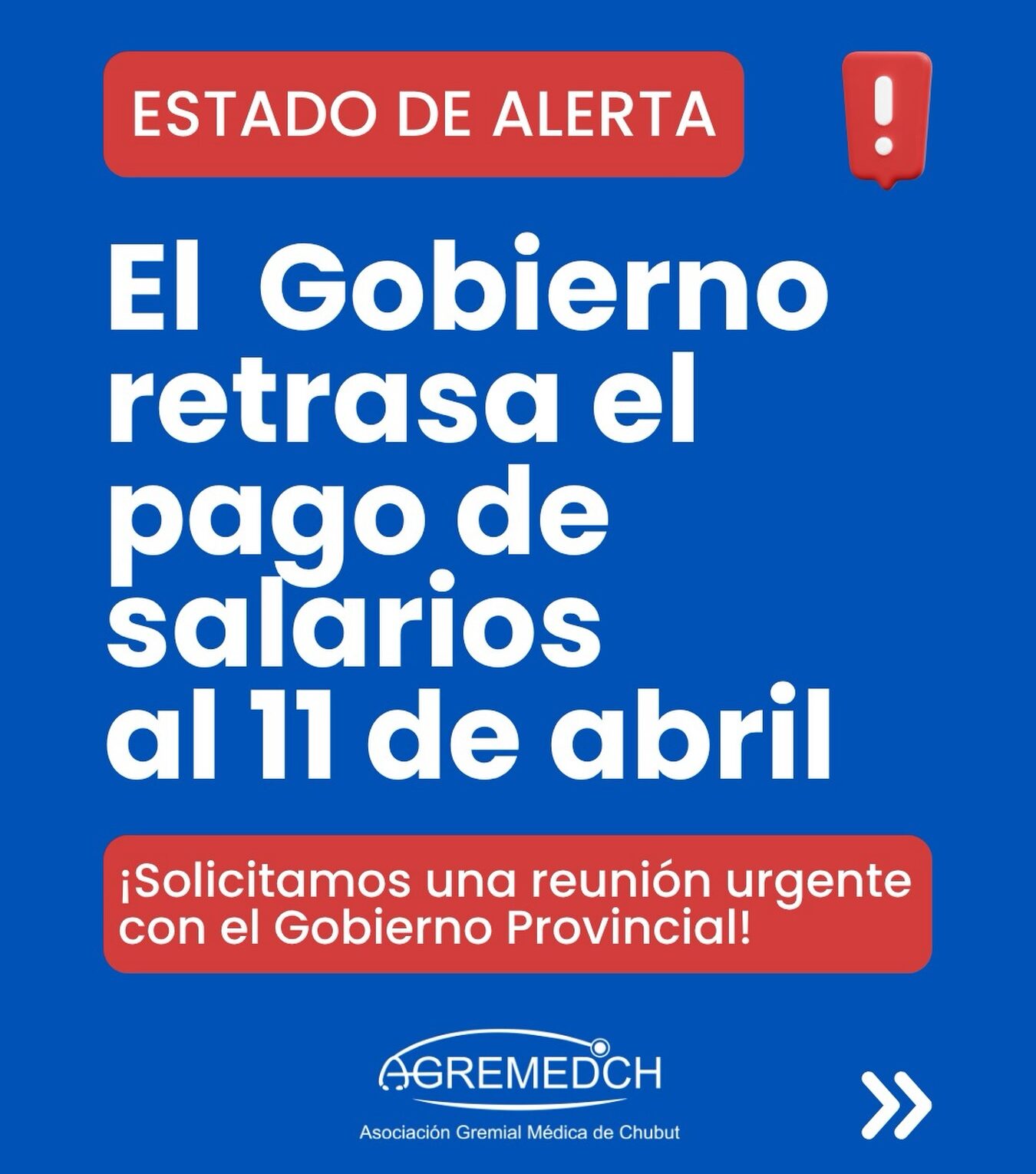 AGREMEDCh cuestionó la decisión del Gobierno provincial de abonar los sueldos de marzo el 11 de abril y solicitó una reunión urgente. La Asociación Gremial Médica de Chubut (AGREMEDCh) manifestó su preocupación tras el anuncio del Gobierno provincial sobre el cronograma de pago de salarios correspondientes a marzo. Según se informó, los trabajadores activos percibirán sus haberes el 11 de abril, mientras que el sector pasivo cobrará el día anterior. Frente a esta situación, desde el gremio médico se declararon en estado de alerta y reclamaron una pronta respuesta por parte de las autoridades. “El Gobierno de Chubut retrasó el pago de salarios al 11 de abril. Solicitamos una reunión urgente con el Gobierno Provincial”, expresaron a través de un comunicado. La entidad remarcó la importancia de establecer un canal de diálogo inmediato con el Ejecutivo para abordar la situación, y su impacto en la organización económica de los trabajadores. Navegación de entradas Estatales de Trelew cerraron un 3% para marzo Policía reclama pago de sueldos y adicionales