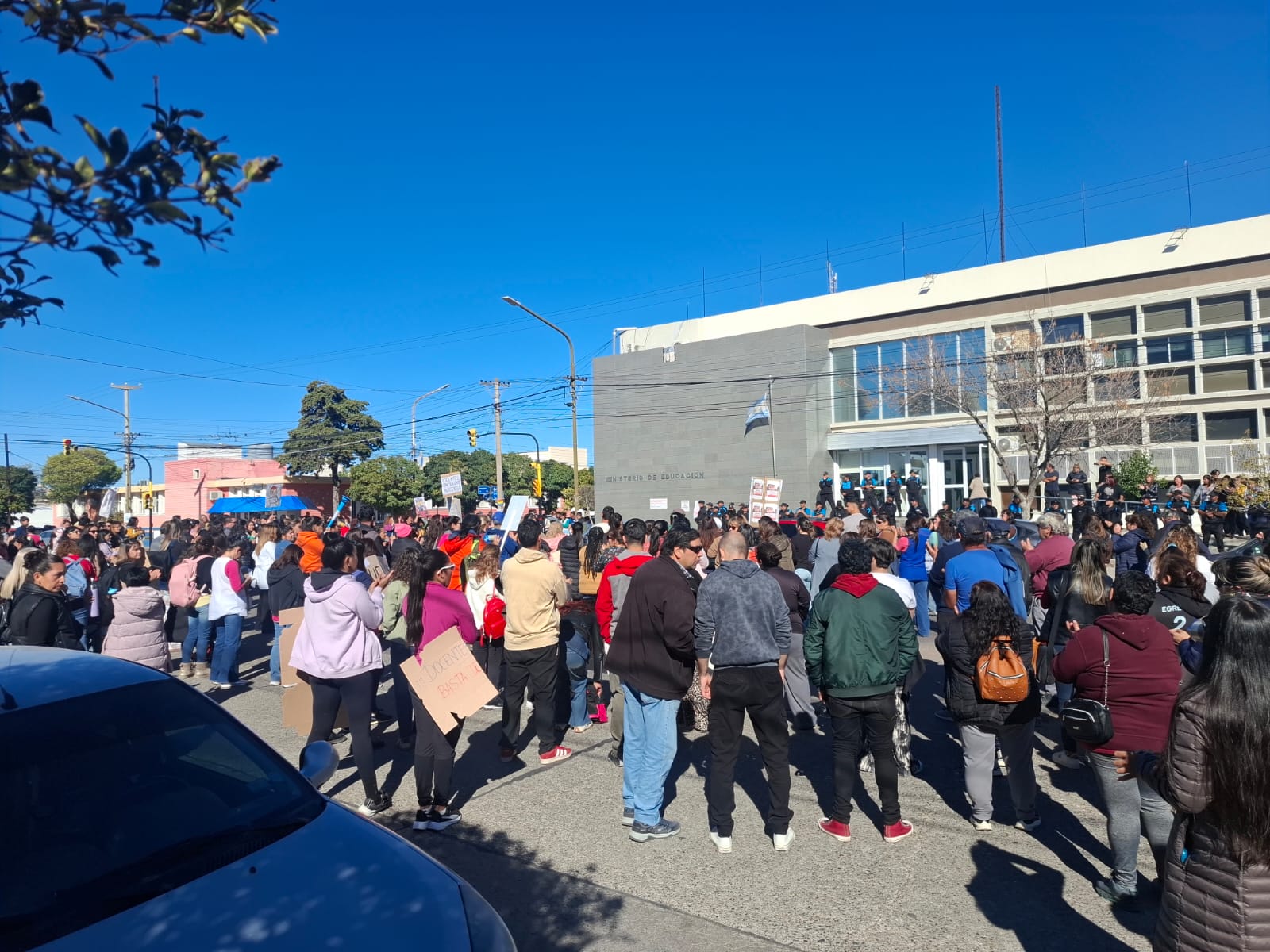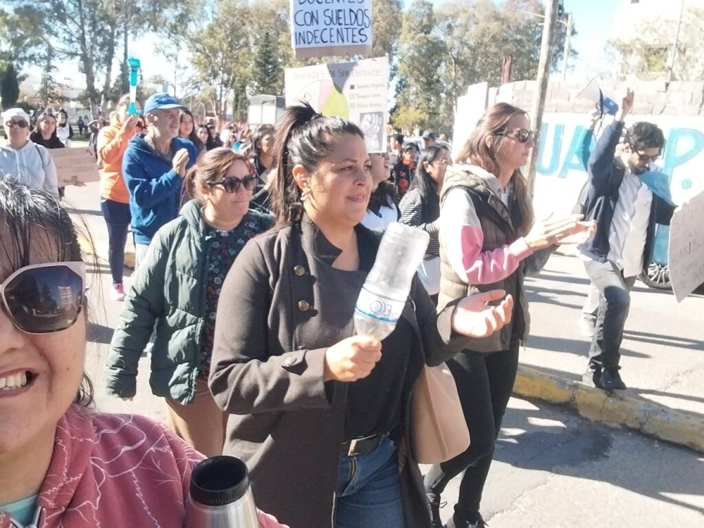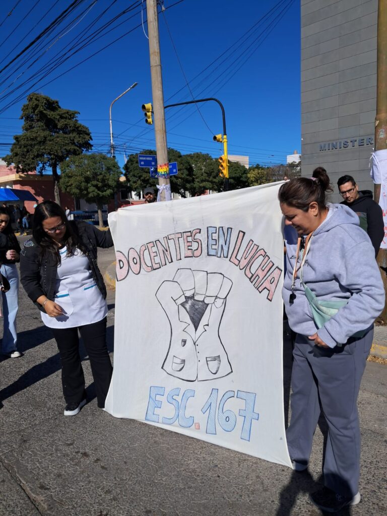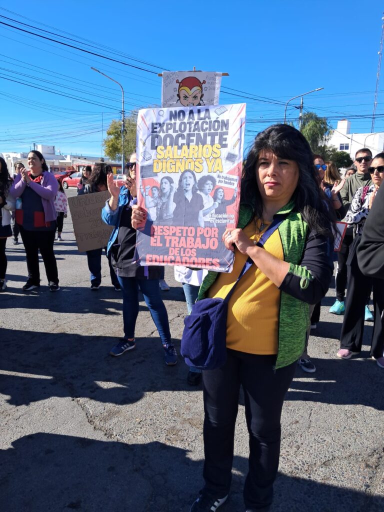 Hubo un reclamo frente al Ministerio de Educación. Con carteles, los educadores expresaron su descontento salarial. MIRÁ LAS FOTOS. Docentes autoconvocados realizaron este martes un ruidazo en el exterior del Ministerio de Educación en Rawson. Provistos de carteles y banderas, los trabajadores de la educación exteriorizaron su reclamo salarial, entre otras condiciones agrias que tiene que atraviesan. “Salarios de hambre”, “No a la explotación docente”, “Educar es combatir”, fueron algunos carteles que se observaron durante la protesta. Quedó en evidencia el volumen de policías ubicados a resguardo del edificio estatal. Resultó llamativa la cantidad de efectivos afectados a Educación, considerando la pasividad del reclamo. Una muestra de la incompetencia de quienes deciden en la fuerza de seguridad, que deben optimizar el recurso y no sobreactuar las situaciones. Navegación de entradas “No soportamos más”: habrá paro docente este jueves