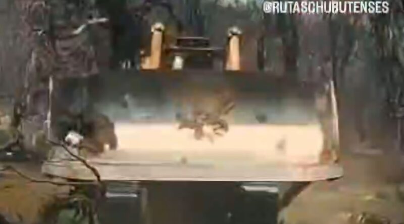 Un video muestra el trabajo realizado por una topadora para proteger el bosque de las llamas. Como sucede con otras